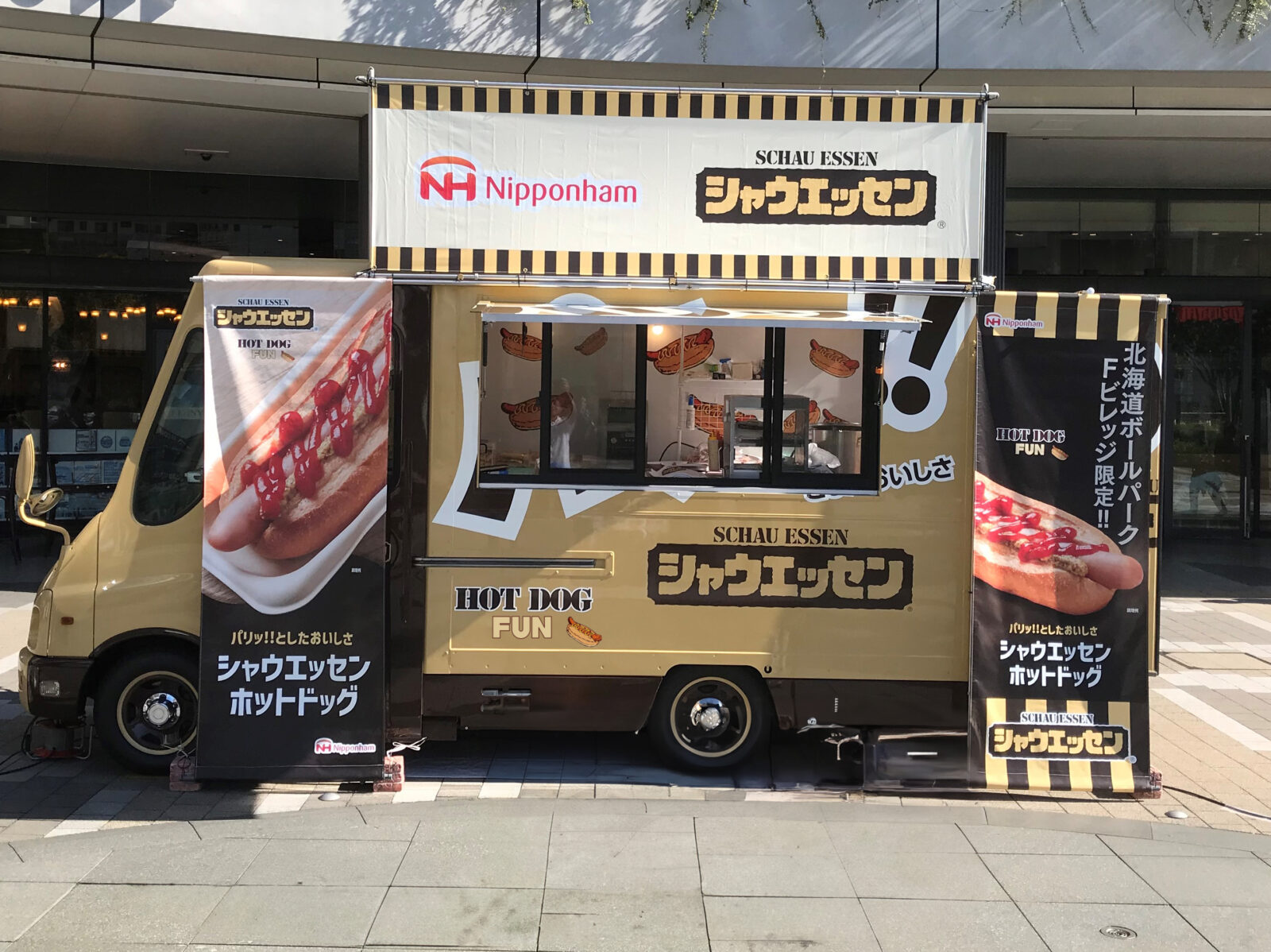 エスコンフィールドHOKKAIDOのフードホール名物!シャウエッセンを使用した「限定ホットドッグ」!!がキッチンカーで登場します。 北海道産小麦を使用したこだわりのパンを使用し、シャウエッセンとの相性も抜群です。